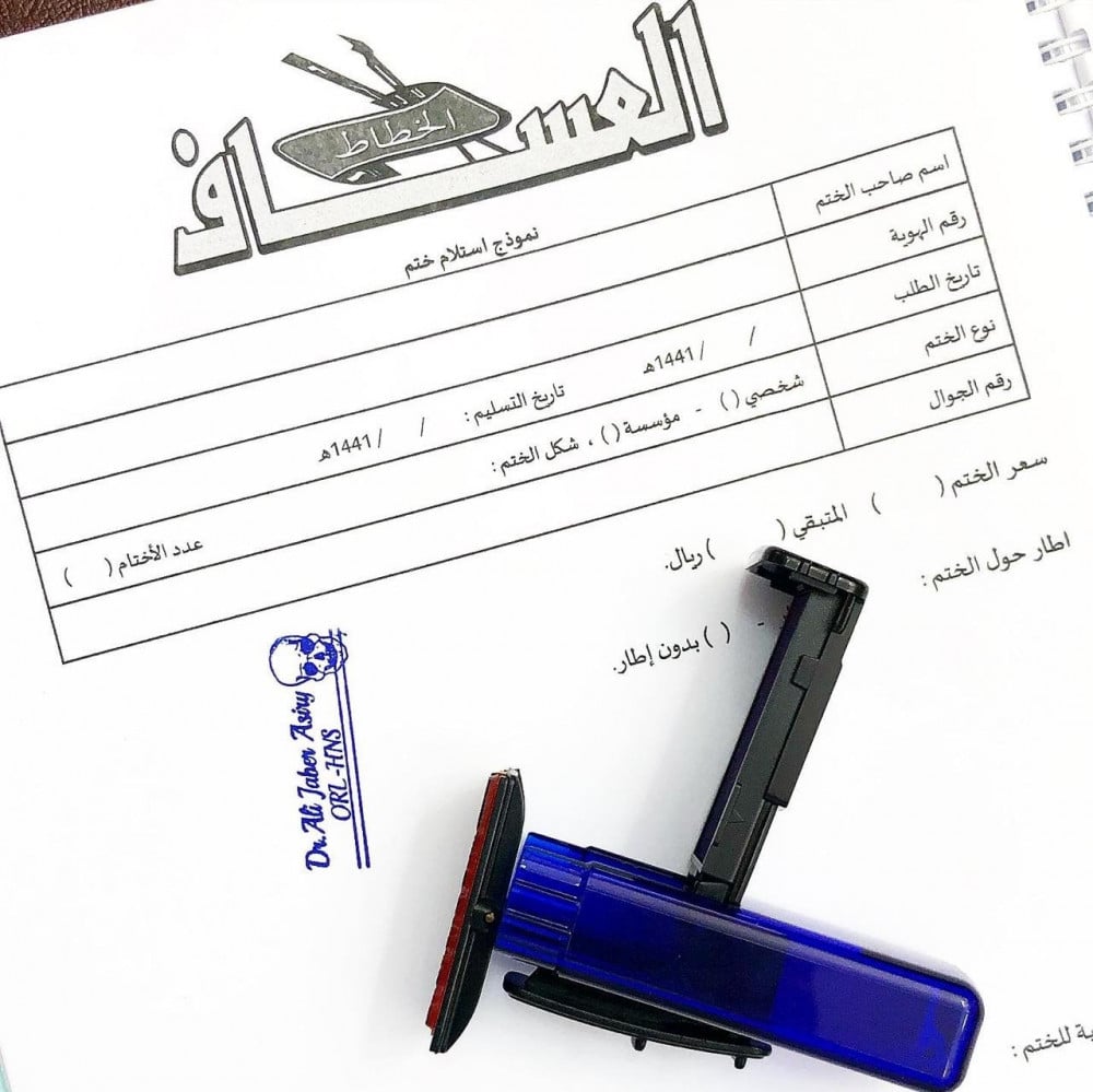 ختم جيب ذاتي التحبير.مقاس الختم ومقاس الطبعة (موضّح في الصور).لون طبعة الختم: أزرق.يستمر الحبر فترة 6 أشهر إلى سنة (تزيد أو تقل بزيادة وقلة الاستخدام).يمكن إعادة تعبئة الحبر بسهولة.سيتم إرسال التصميم على الواتس آب للاعتماد.مدة التنفيذ: 2 - 5 أيام عمل بعد اعتماد التصميم.في حال اختيار تصميم بخط يدوي تزيد مدة التنفيذ 2 - 4 أيام عمل.مدة التوصيل - الشحن: 1 - 3 أيام عمل.لمشاهدة نماذج من أعمالنا تفضل بزيارة حسابنا في إنستقرام: @alassaf1437
