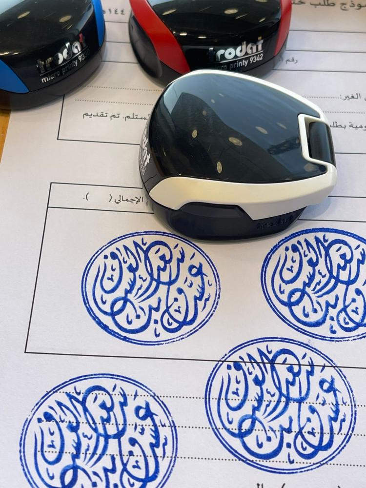 ختم جيب ذاتي التحبير.مقاس الختم ومقاس الطبعة (موضّح في الصور).لون طبعة الختم:حسب اختيارك .يستمر الحبر فترة 6 أشهر إلى سنة (تزيد أو تقل بزيادة وقلة الاستخدام).يمكن إعادة تعبئة الحبر بسهولة.سيتم إرسال التصميم على الواتس آب للاعتماد.مدة التنفيذ: 2 - 5 أيام عمل بعد اعتماد التصميم.في حال اختيار تصميم بخط يدوي تزيد مدة التنفيذ 2 - 4 أيام عمل.مدة التوصيل - الشحن: 1 - 3 أيام عمل.لمشاهدة نماذج من أعمالنا تفضل بزيارة حسابنا في إنستقرام: @alassaf1437