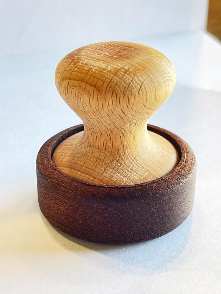 • ختم خشبي دائري متميز مع غطاء خشبي.