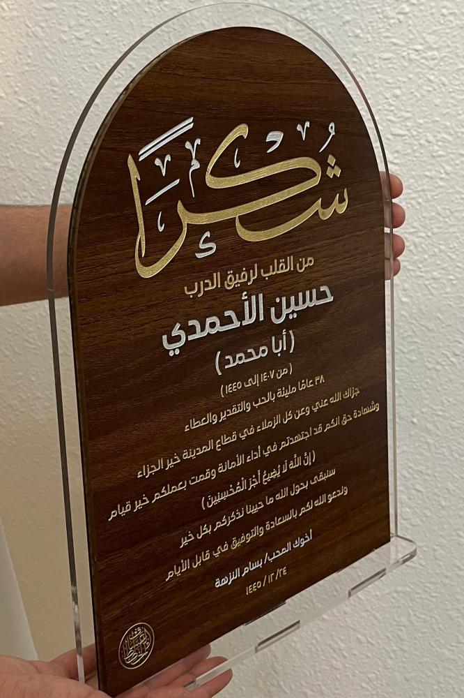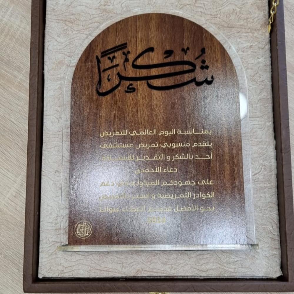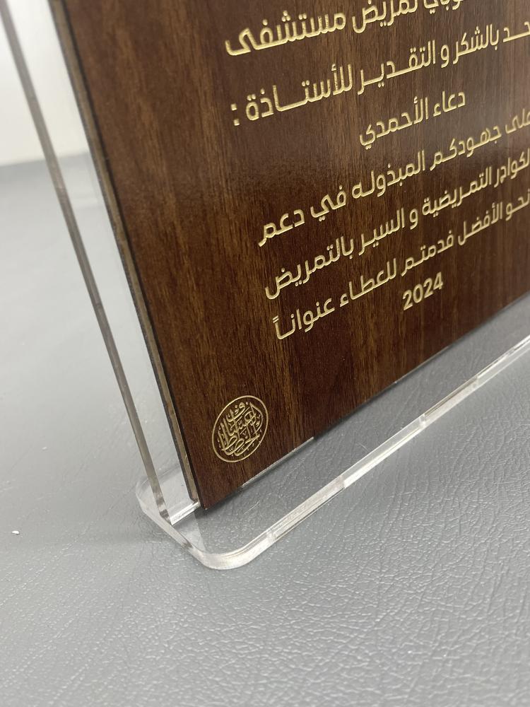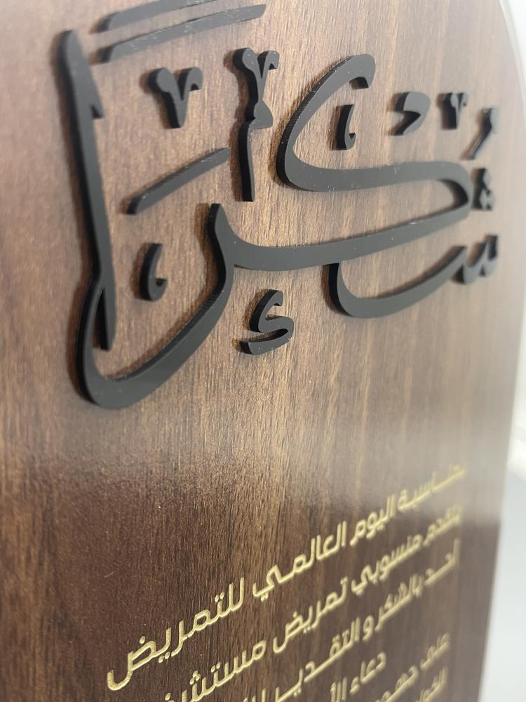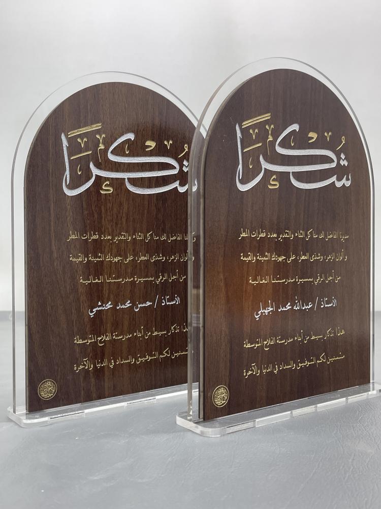 - يمكنك حفر عبارات الإهداء والصور والشعارات على الدرع